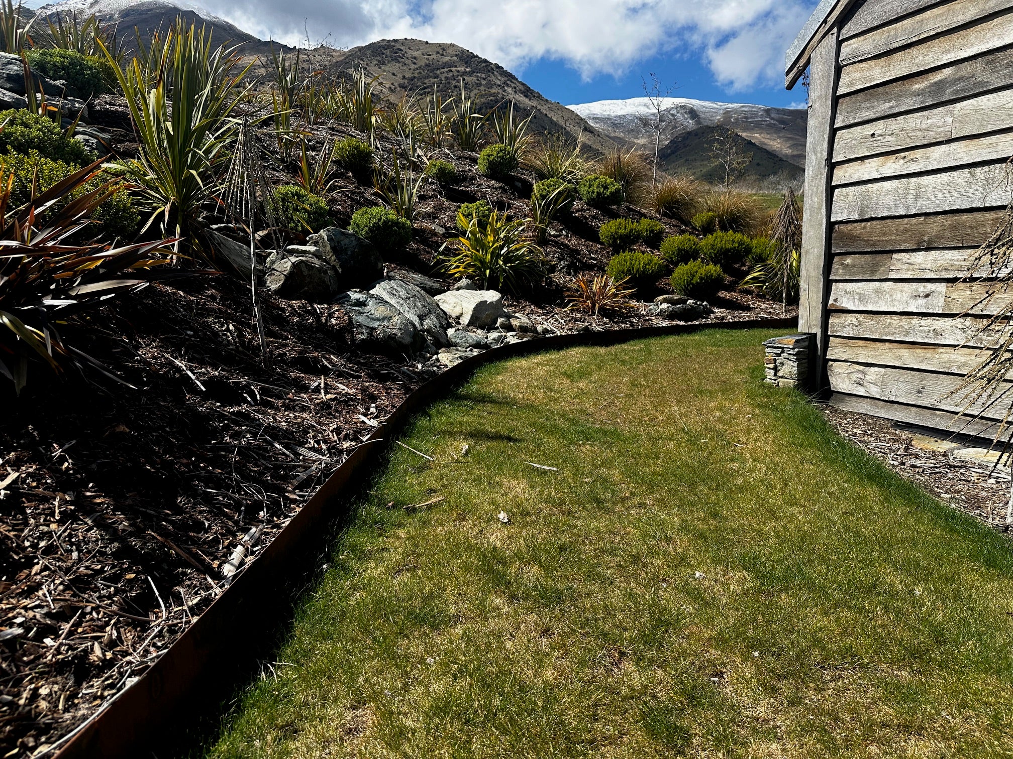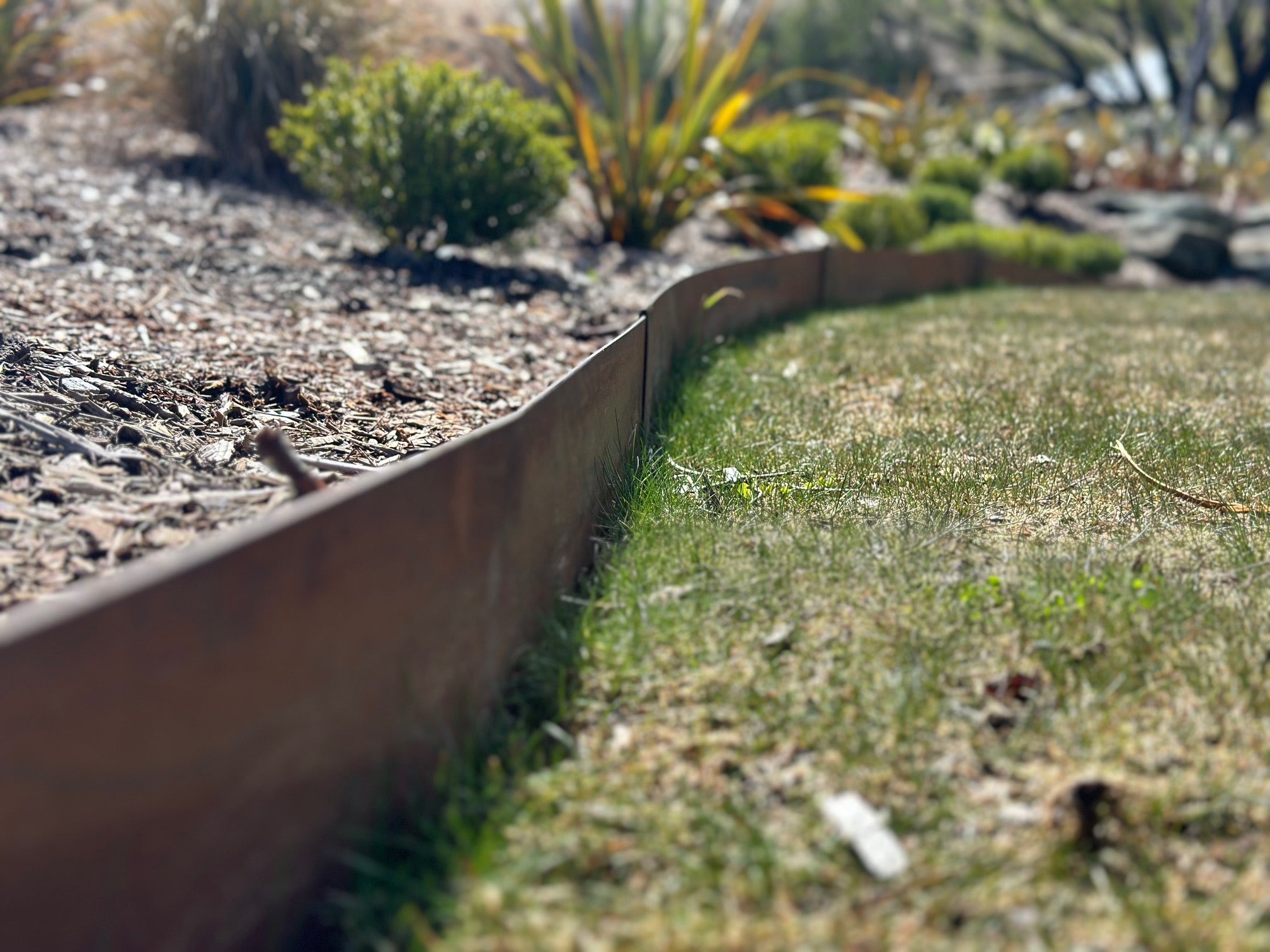 Corten Steel edging is an effective solution for separating lawn from driveways, walkways, or gravel areas. Durable enough to withstand high traffic, this edging keeps gravel contained and prevents grass from growing into unwanted areas, giving a clean, professional appearance to your landscape.