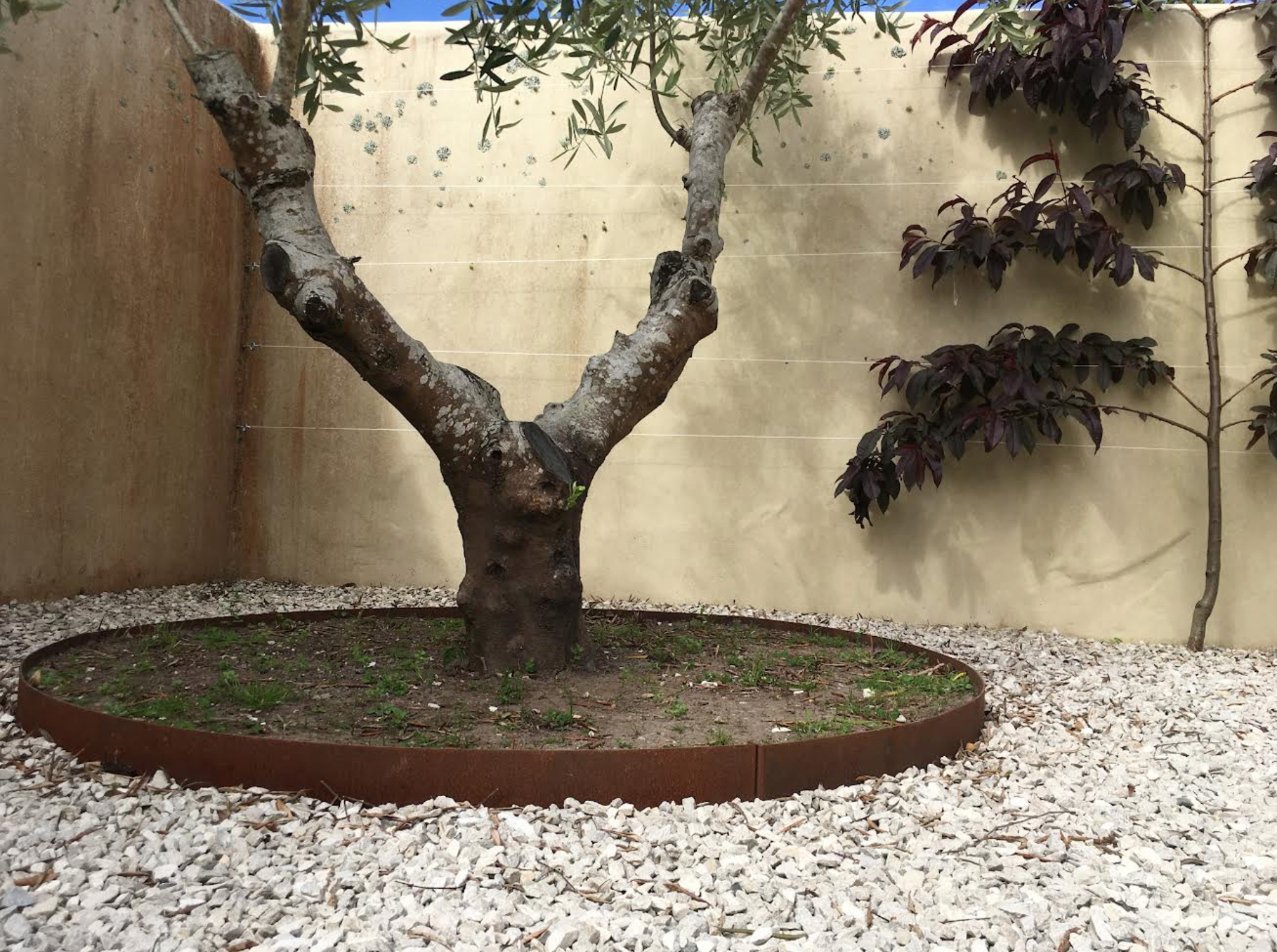 Our super popular corten tree ring line. Constructed from robust 3mm thick corten steel, 100mm high. It comes in 3 pieces and bolts together so it's very easy to put around existing trees (bolts and nuts supplied).