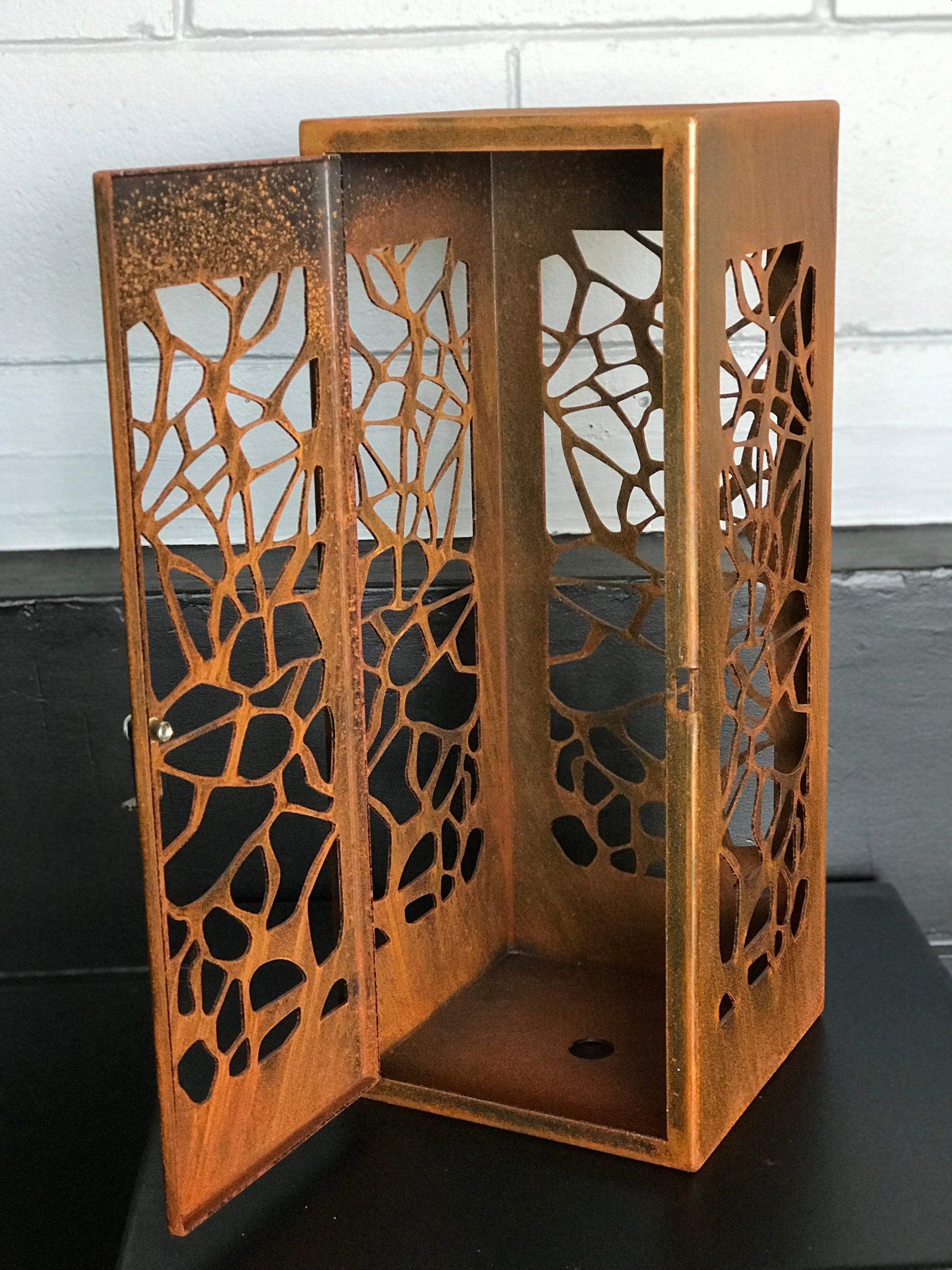 These beautiful corten lanterns available in 3 amazing designs will provide that extra special mood lighting for your outdoor seating area or pathway.Made with 2mm thick corten steel and an easy opening door they'll provide many years of outdoor lighting.