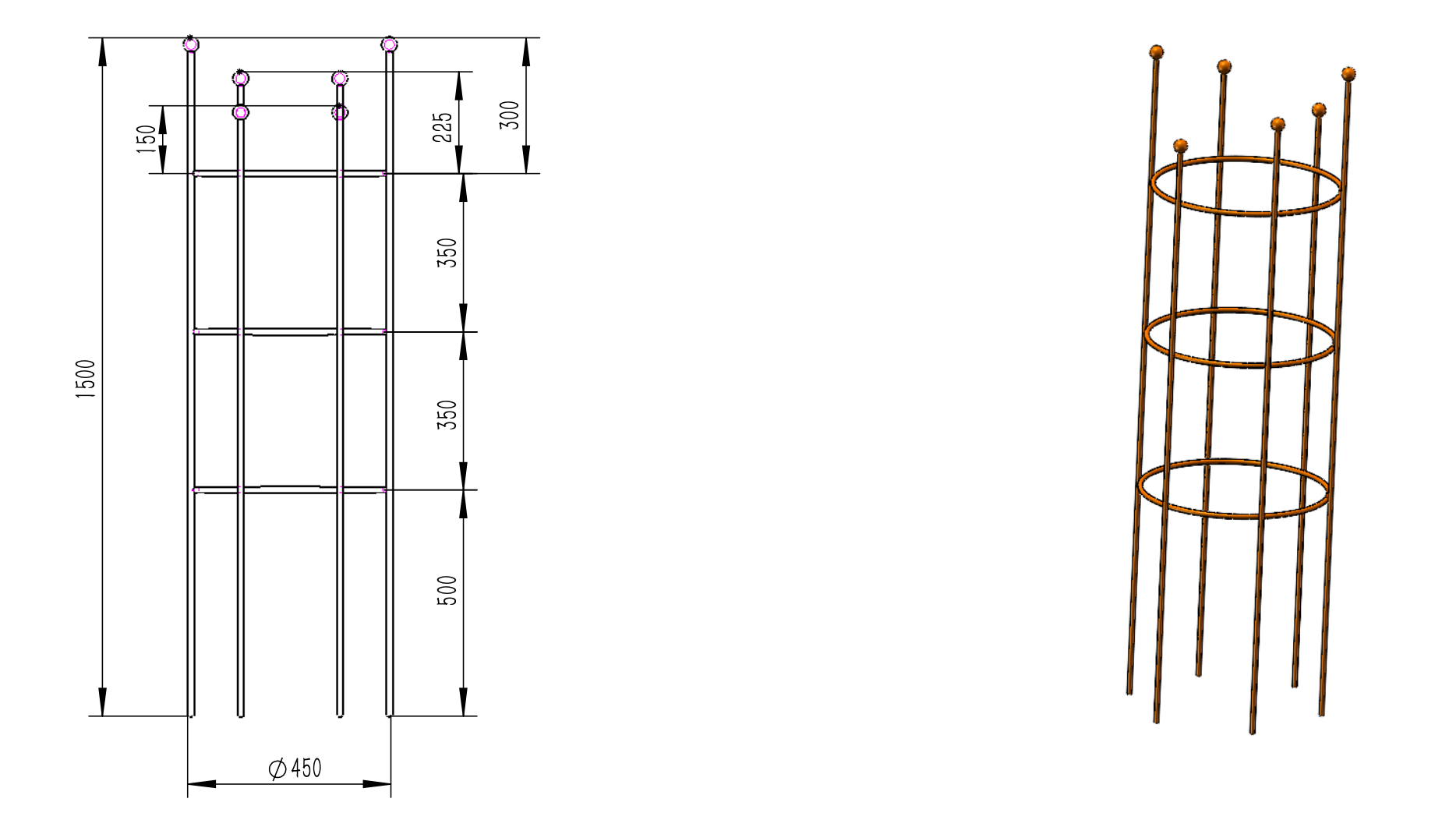 1500mm high x 450mm diameter (3 Rings) 7.8kgs - $165