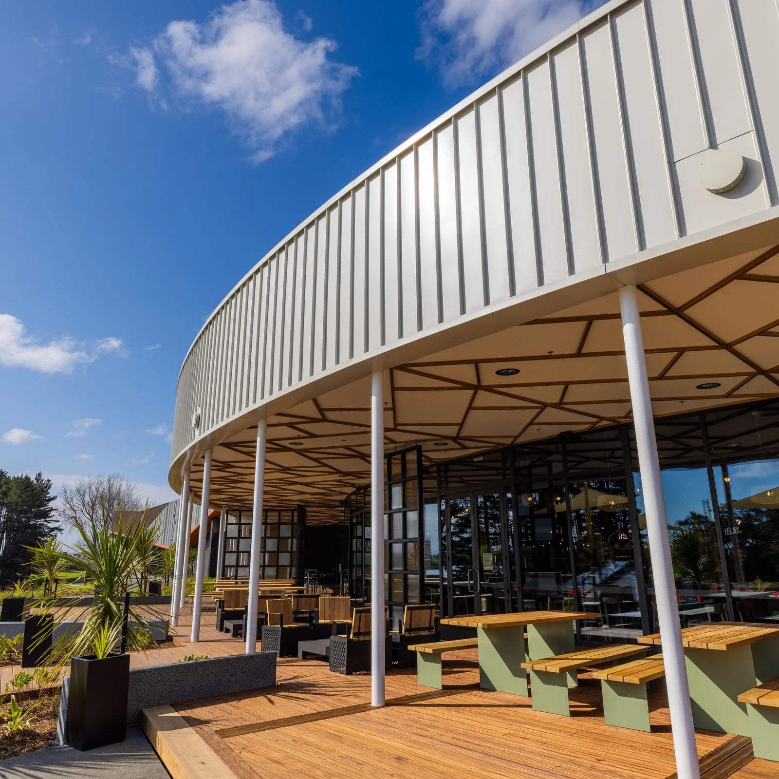 The result at Mānawa Bay is a landscape that feels cohesive, grounded, and permanent — one that will continue to evolve as planting matures and the precinct settles into its coastal setting.